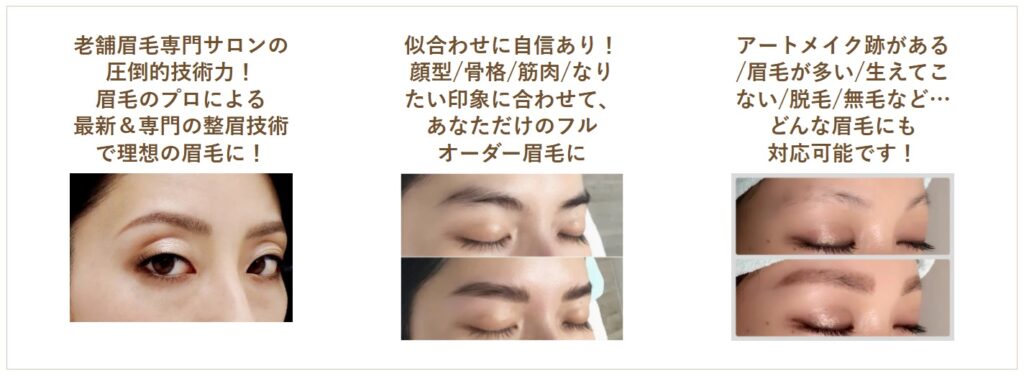 当サロンや眉毛のデザイン、各種眉メニューについて、